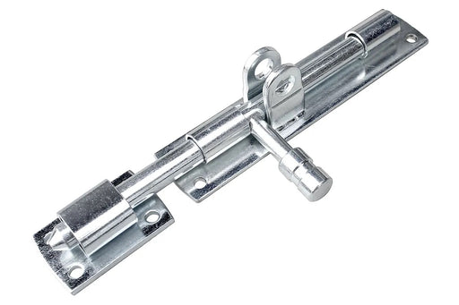 Horizontal bolt suitable to be locked with a padlock can be surface mounted with screws on wood and self tappers on metal. The bolt slides easily a...